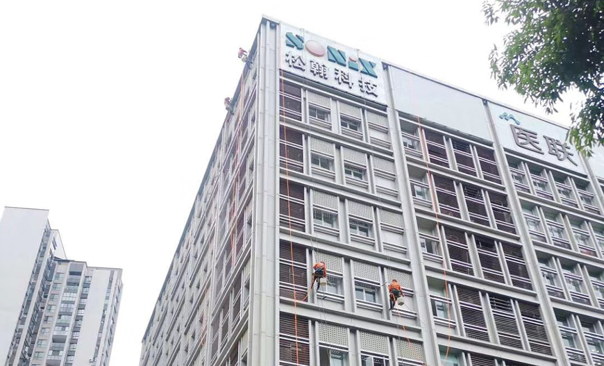 成都潔爾亮清潔對B區(qū)大樓外墻清洗服務(wù)。